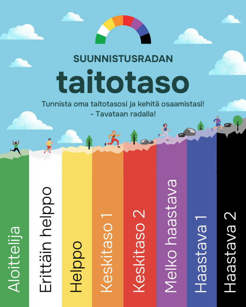 Lue tästä suunnistusratojen taitotasot väriasteikolla